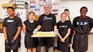students about plant parts and their functions. It was a joy to watch them teach and engage with kids from grades 1 through 5. Meanwhile, another crew learned the basics of baking with longtime volunteer Dick Sockwell, while others planted more squash and green beans back on the Urban Farm.